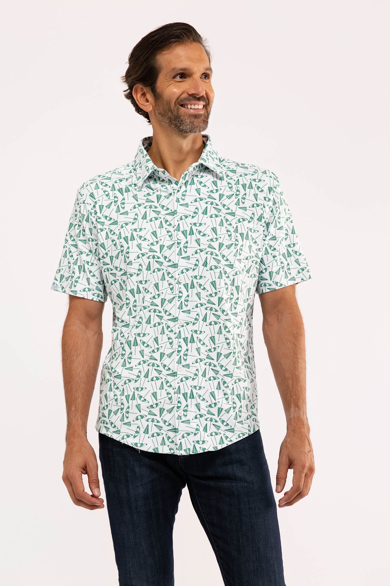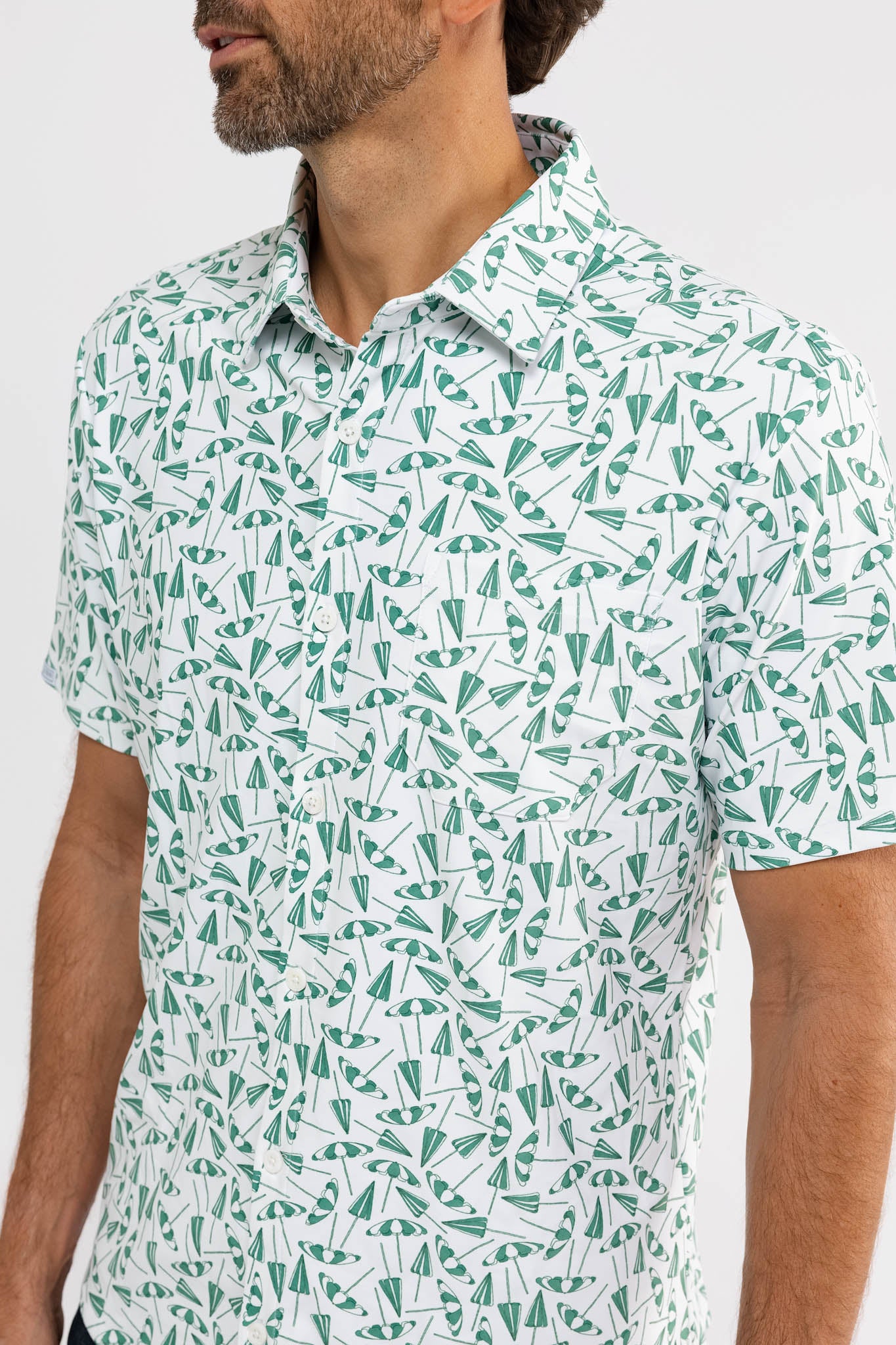 Meet the Boatyard Button-Down. Crafted from our S&Q Stretch fabric, the Boatyard features a versatile button-down style with a collared neckline and chest pocket.