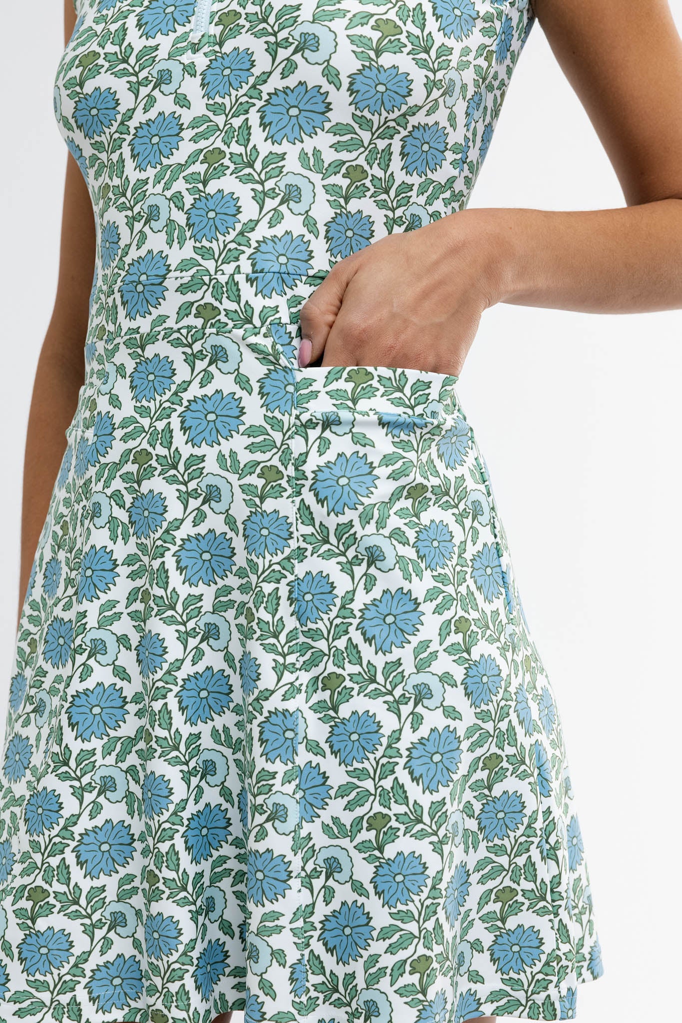 Meet the Cynthia Dress. Crafted from our S&Q Stretch fabric, the Cynthia features a sleek, collared neckline with a quarter-zip front and functional side pockets.
