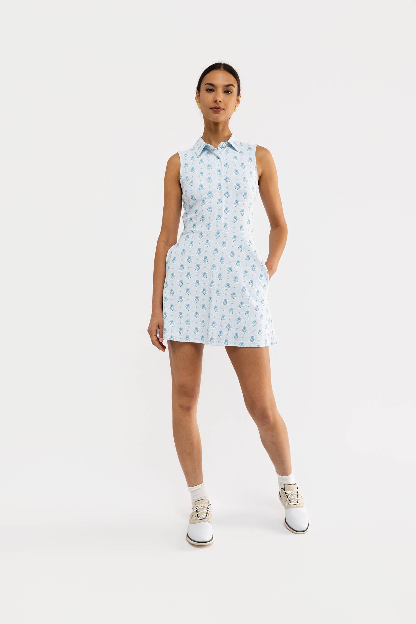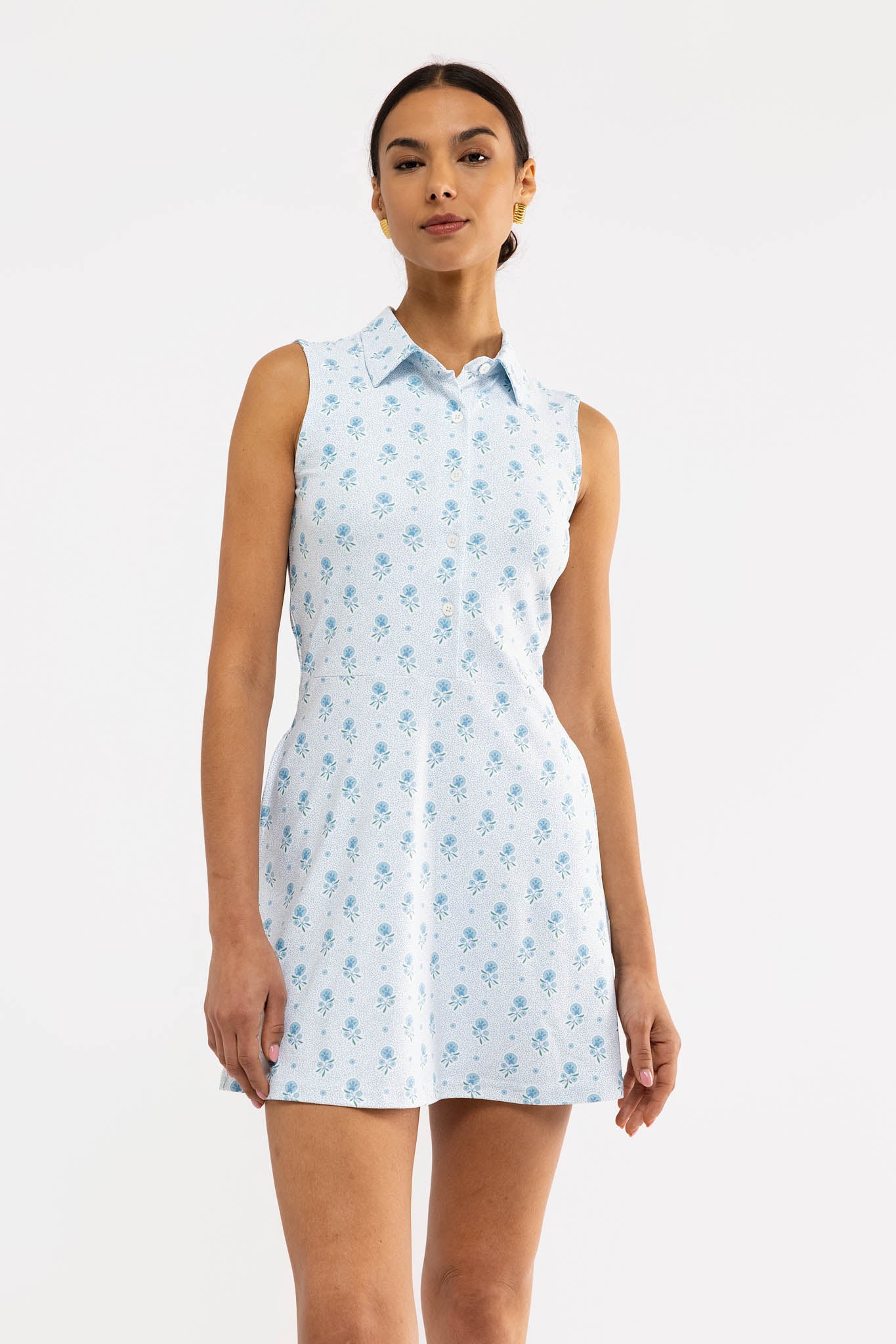 Meet the Hedy Dress. Crafted from our S&Q Stretch fabric, the Hedy features a collared sport silhouette with button-front detailing and functional pockets.