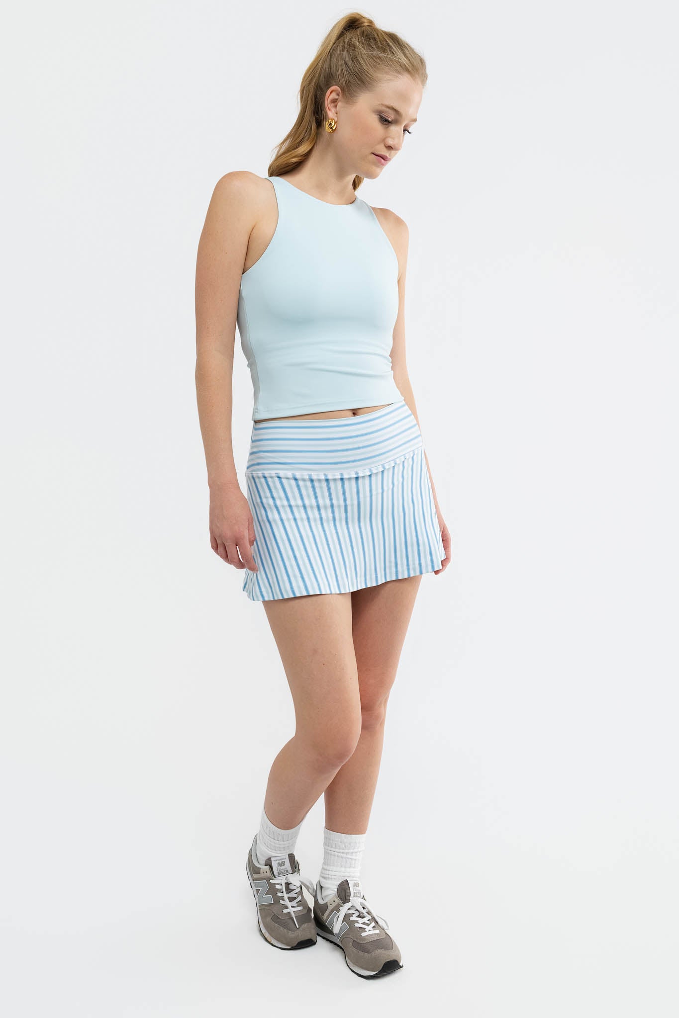 Meet the Jessie Tank. Crafted from a performance stretch fabric, the Jessie features a fitted, high-neck style silhouette, designed with built-in support.