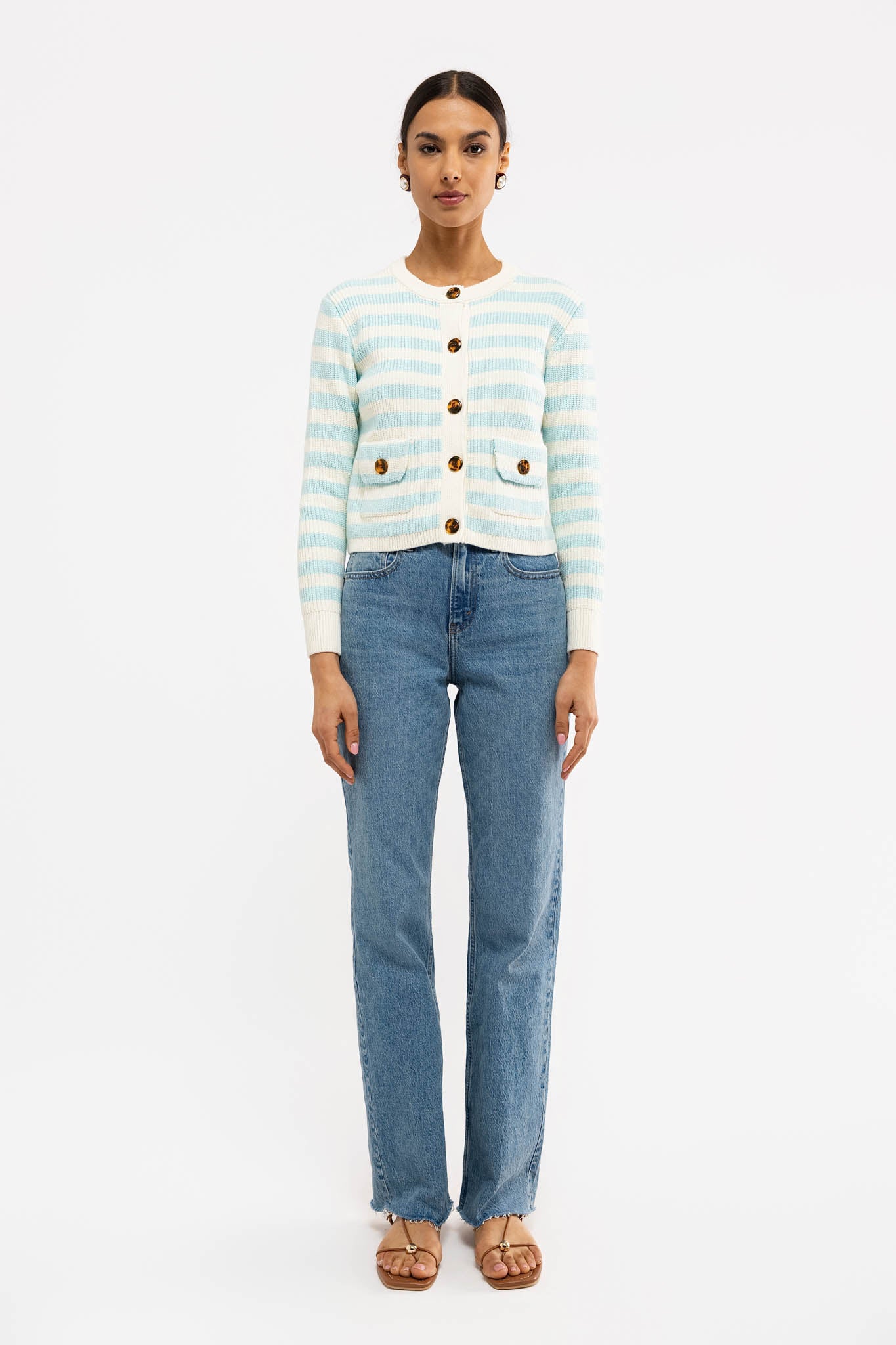 Meet the Laurel Sweater. Crafted from a cotton blend fabric, the Laurel features a cozy, chunky knit design finished with front pockets and button-down detailing.
