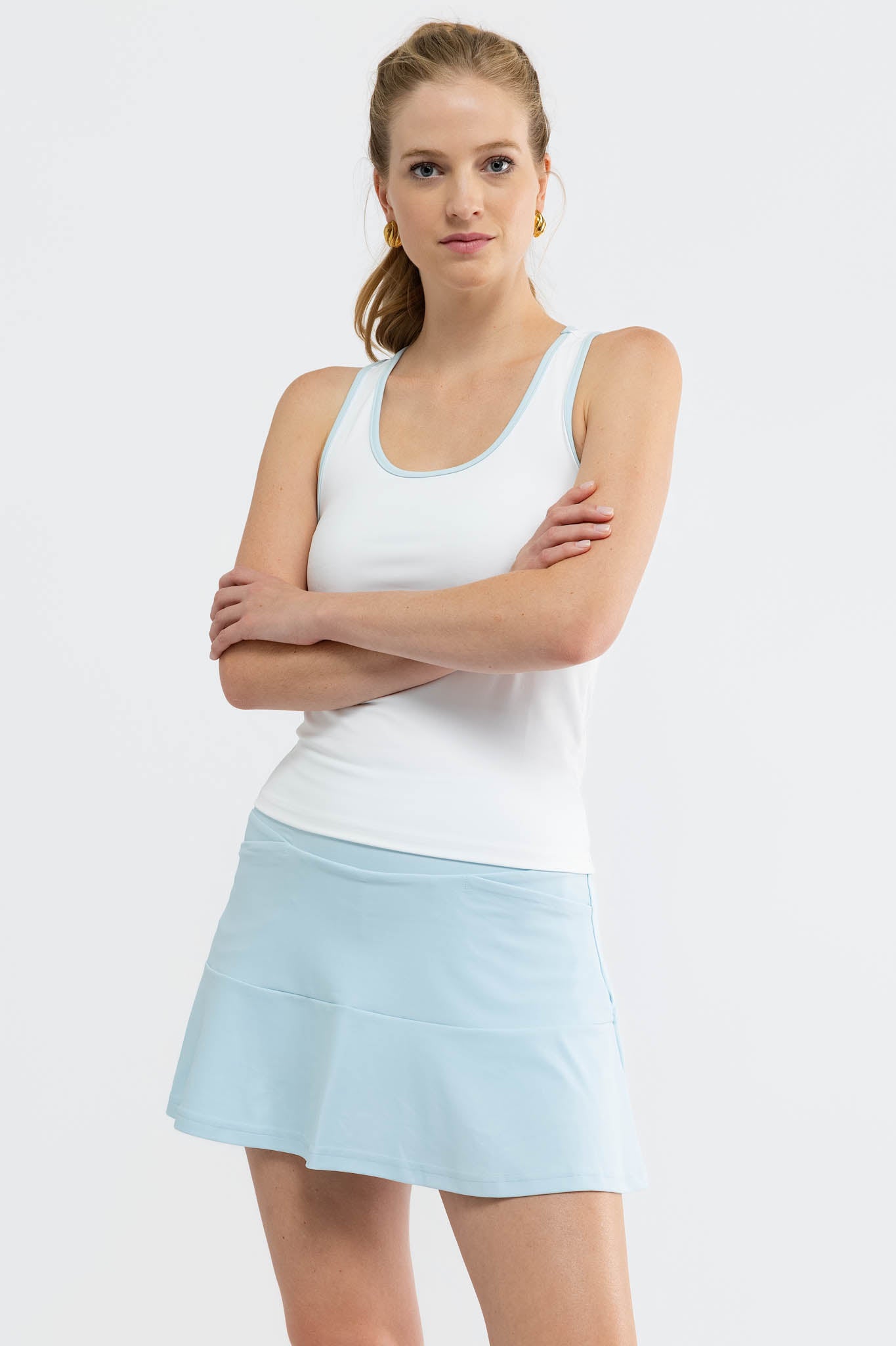 Meet the Mae Tank. Crafted from a performance stretch fabric, the Mae features a flattering scoop neckline with a sleek racerback detail.
