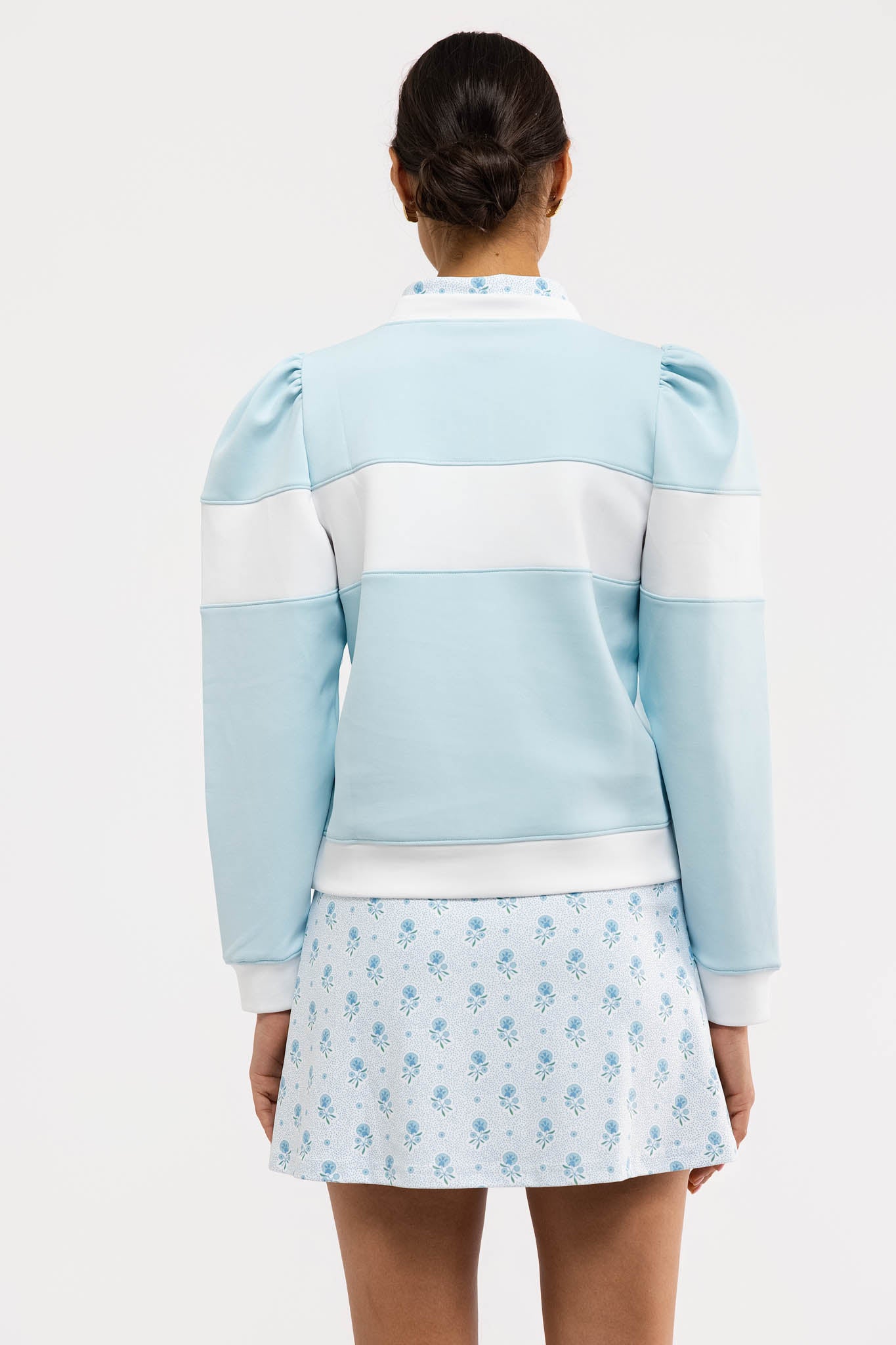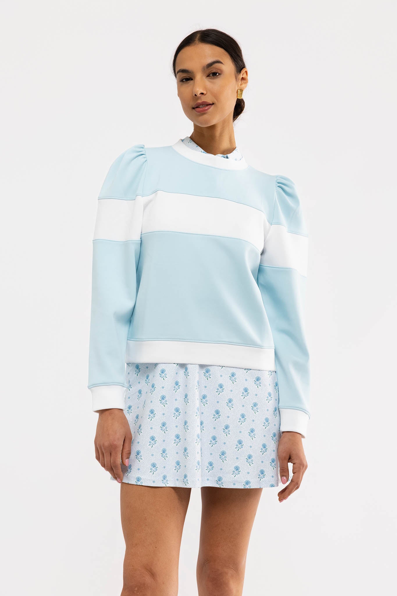 Meet the Peggy Sweatshirt. Crafted from a tech french terry fabric, the Peggy features a sporty-inspired design with a bold stripe and contrast detailing.
