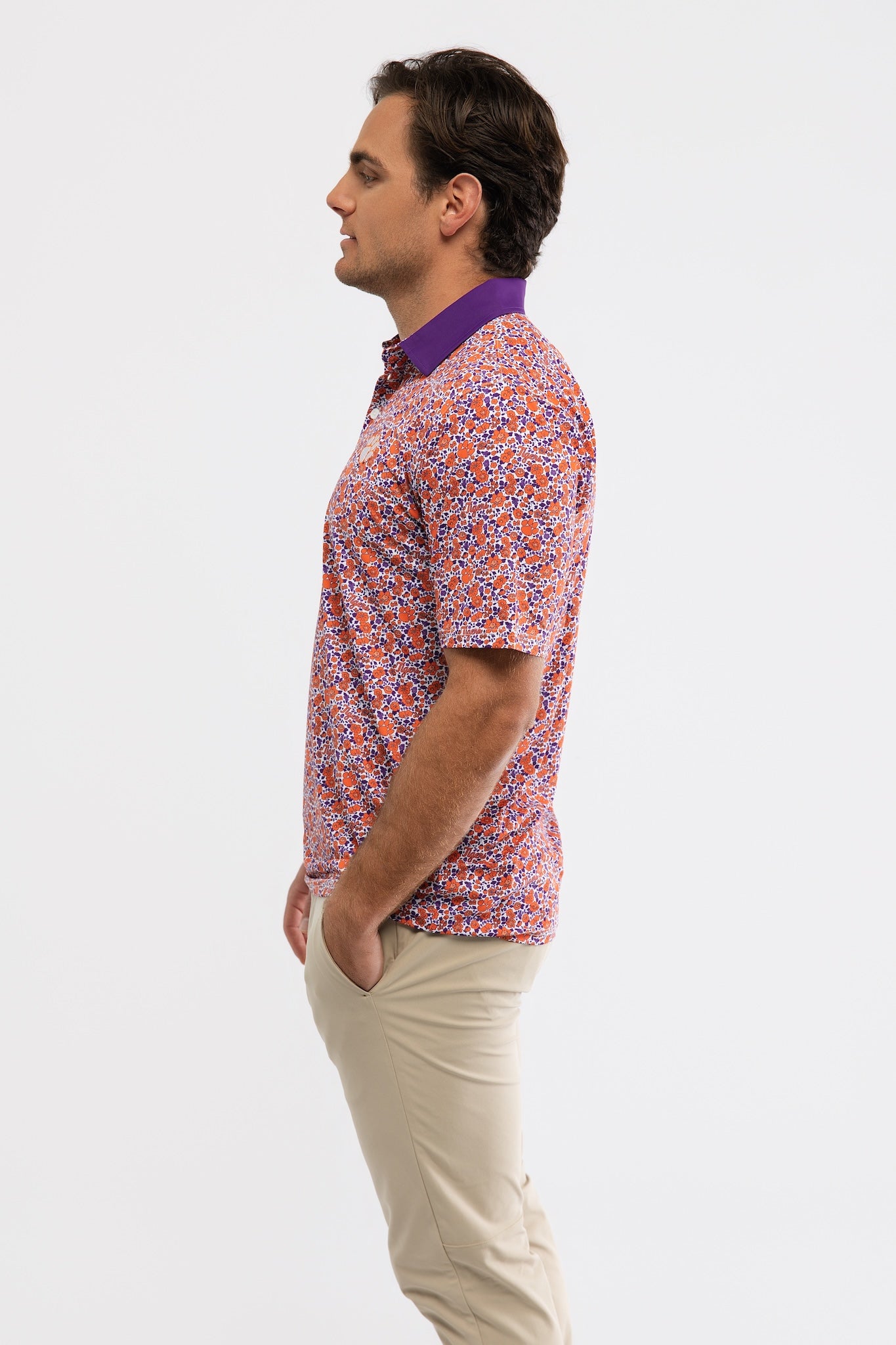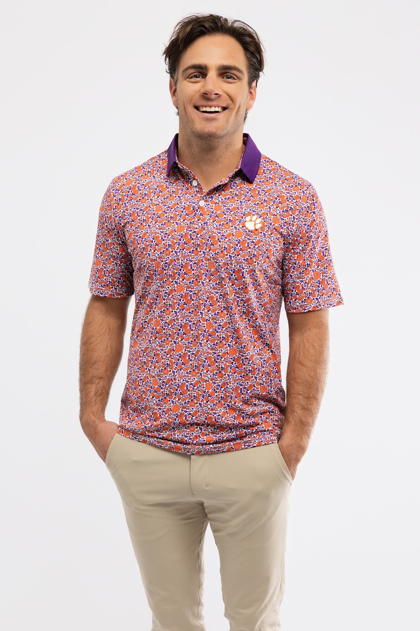 Shown here in Clemson Poppies. Made in Lightweight Performance Stretch fabric.