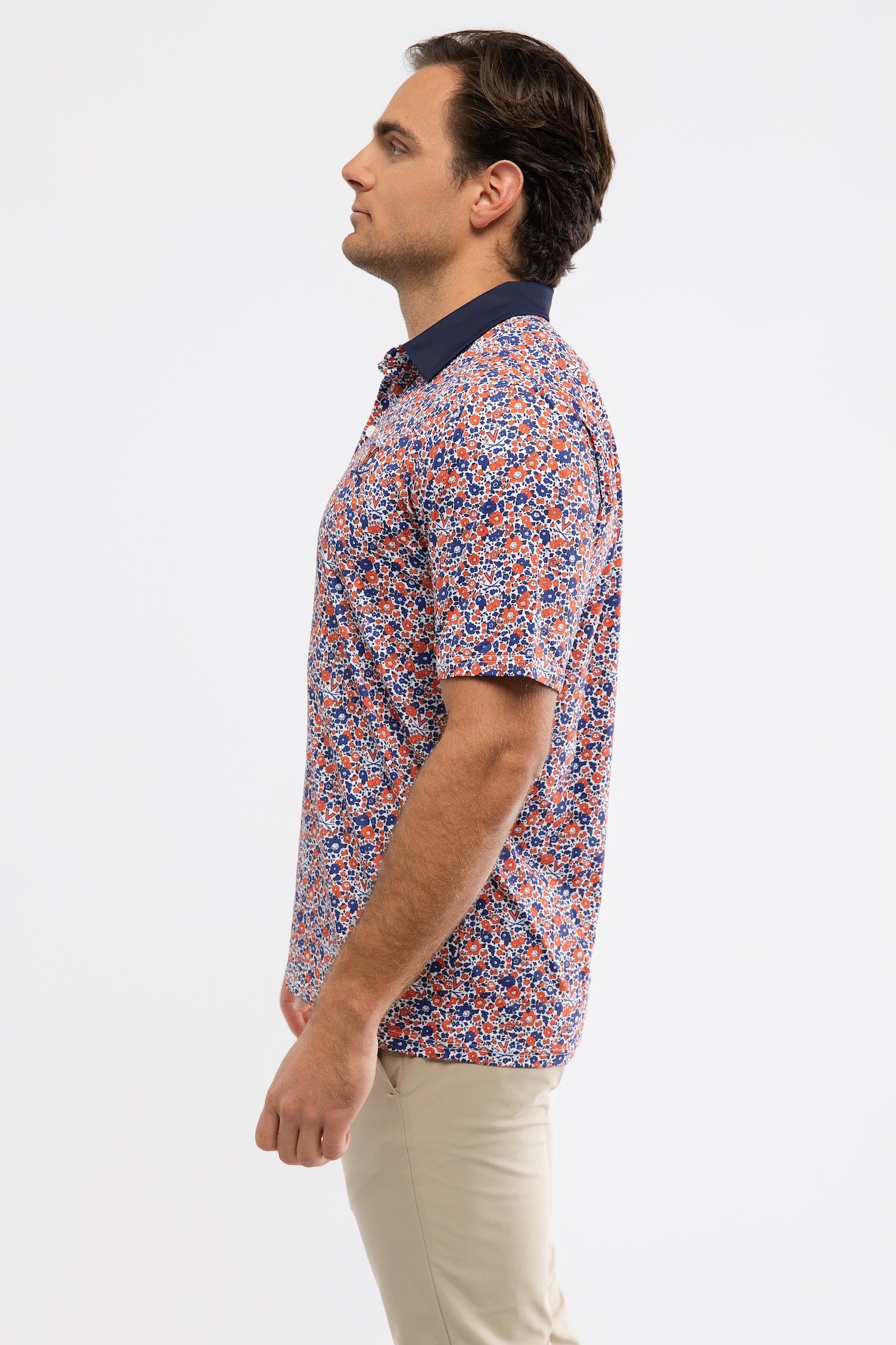 Shown here in UVA Poppies. Made in Lightweight Performance Stretch fabric.