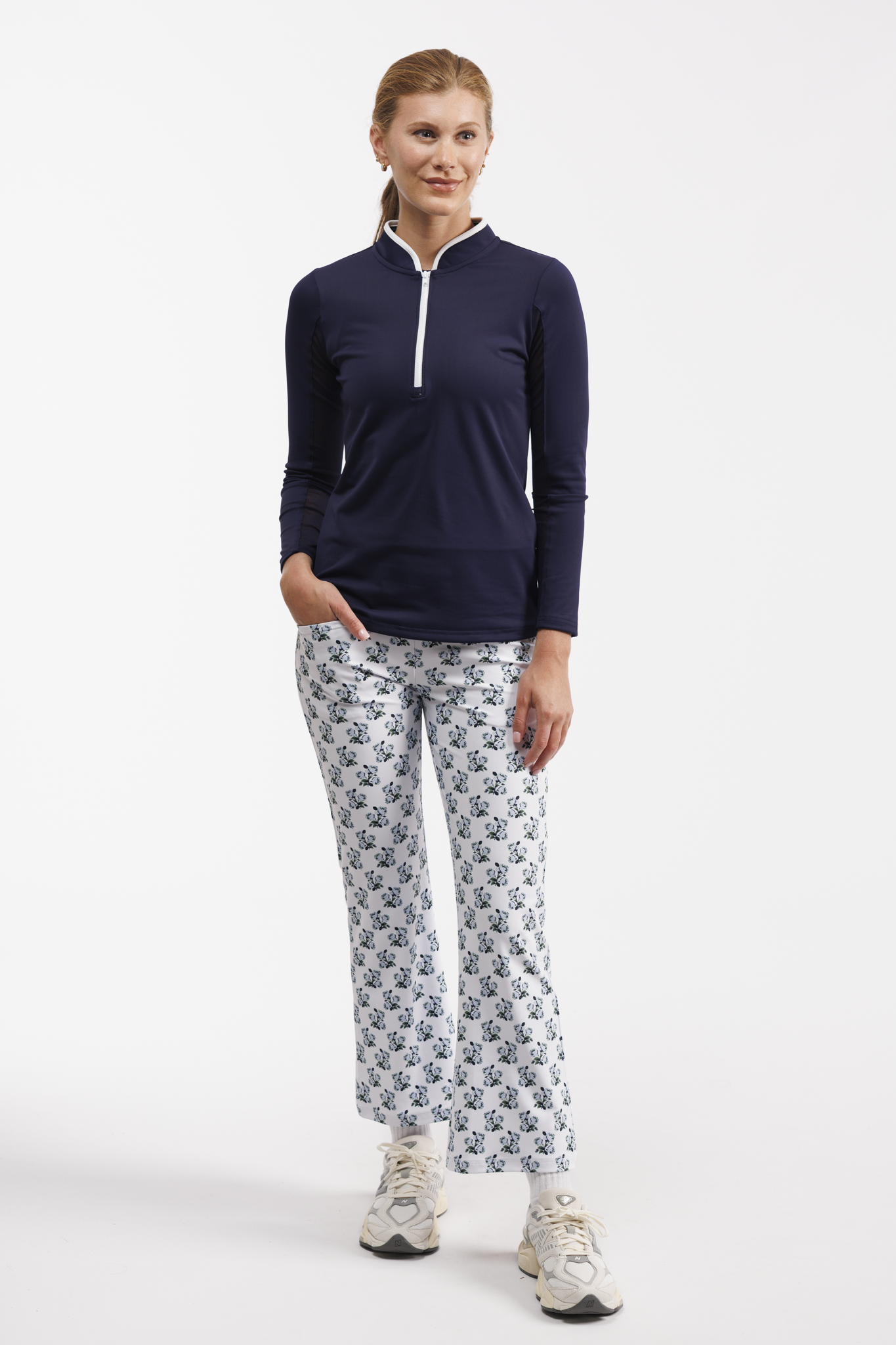 - The Ava 1/4 Zip with Ruffle - Navy (ID: 8042264199416)