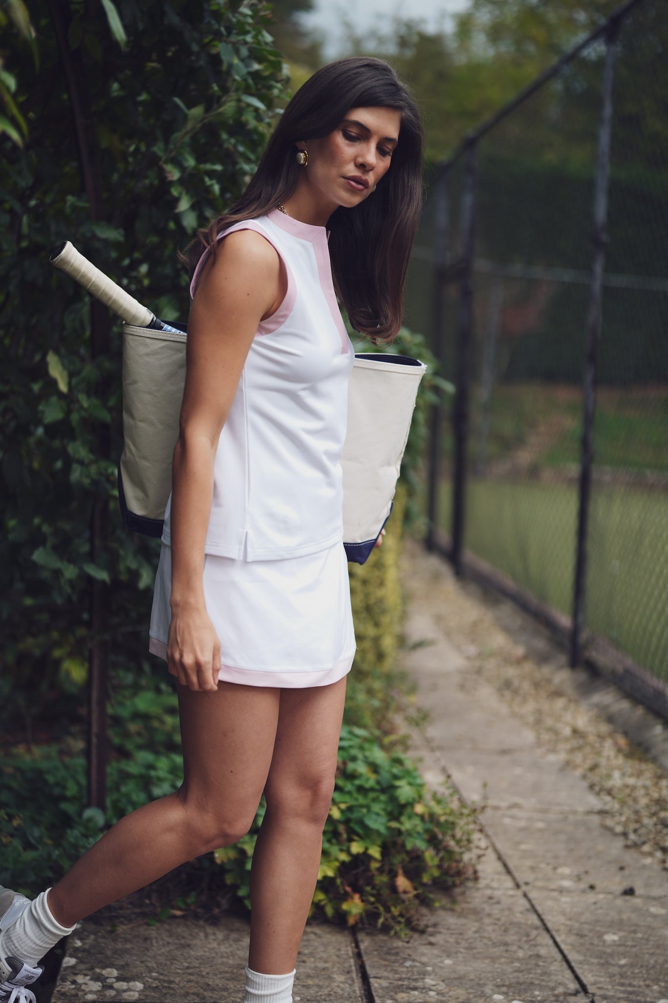Meet the Birdie Skort. Crafted from a performance stretch fabric, the Birdie features a modern, wrap-style design with contrasting trim.