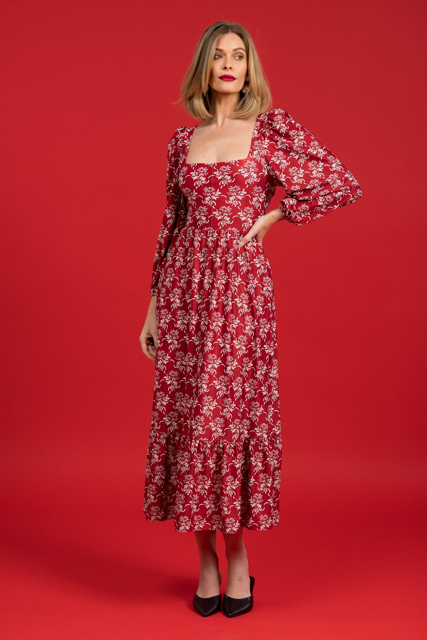 The Natalie Dress - Ribbon Bouquet Red