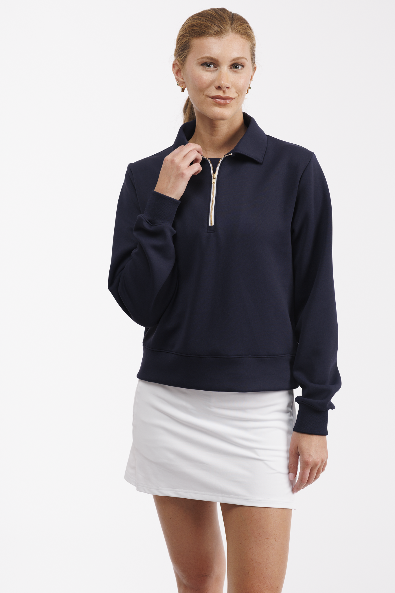 - The Ava 1/4 Zip with Ruffle - Navy (ID: 8042264199416)