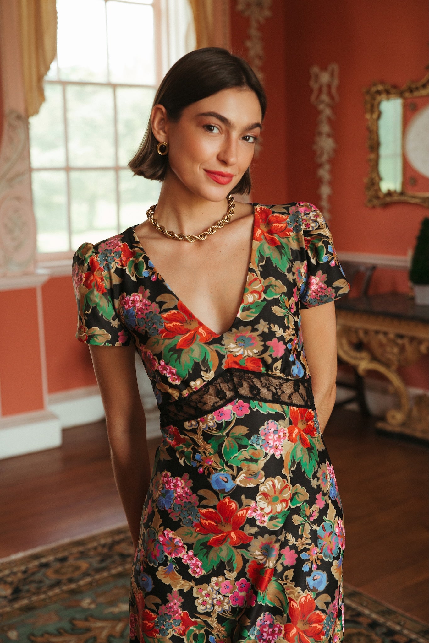 Leave them speechless in our fabulous Octavia Dress! The hints of lace add such a romantic detail. Pair her with a glass of champagne and your favorite heels for the ultimate event-ready look!