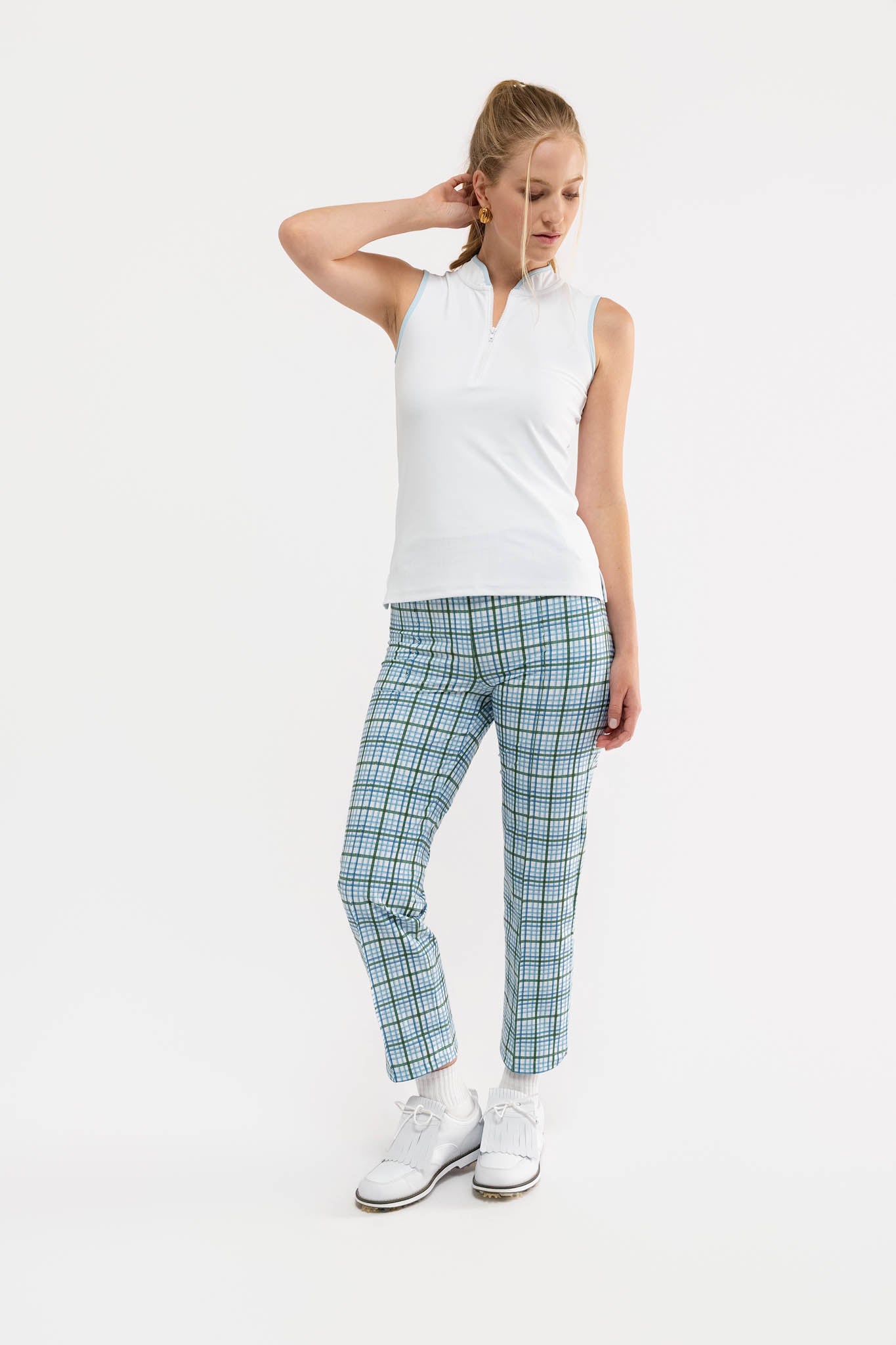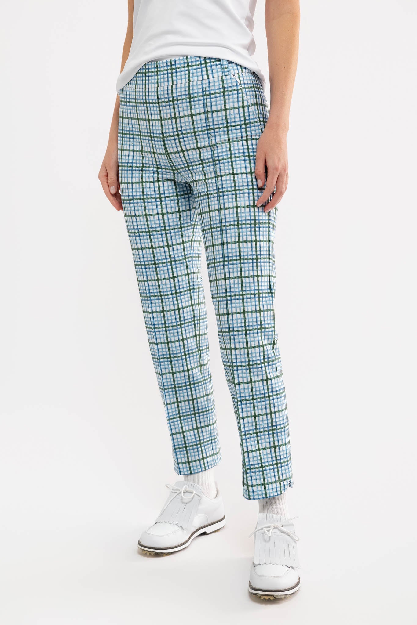 Meet the Portia Pant. Crafted from a performance stretch woven fabric, the Portia features a tailored, athletic-style design with a sleek silhouette and functional pockets.